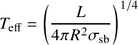 where L is luminosity and R the radius.